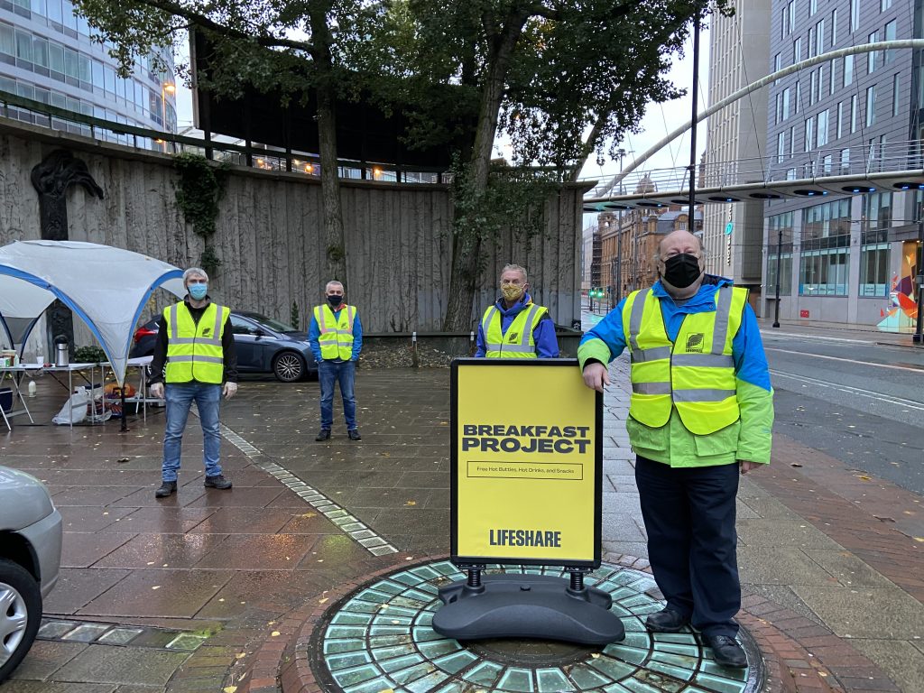 The Lifeshare Weekend Breakfast Project is staffed by volunteers along with a coordinator from our staff and operates from 7-9 am every Saturday and Sunday from a City Center, currently at the Nexus Art Cafe. Throughout the challenging events of the past year, the project has continued to operate as a humanitarian relief effort serving hot breakfasts, tea, and snacks to anyone in need. The breakfast also helps to signpost attendees to helpful resources across the city. During the last year, Lifeshare has partnered with various organisations including Mind, Audacious, Barnabus, and Manchester City Council to keep the service running as it moved locations and adapted to safety protocols.